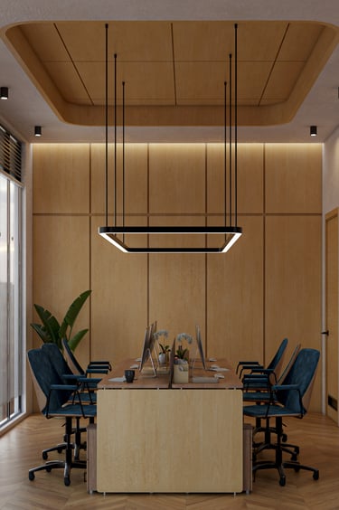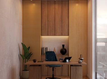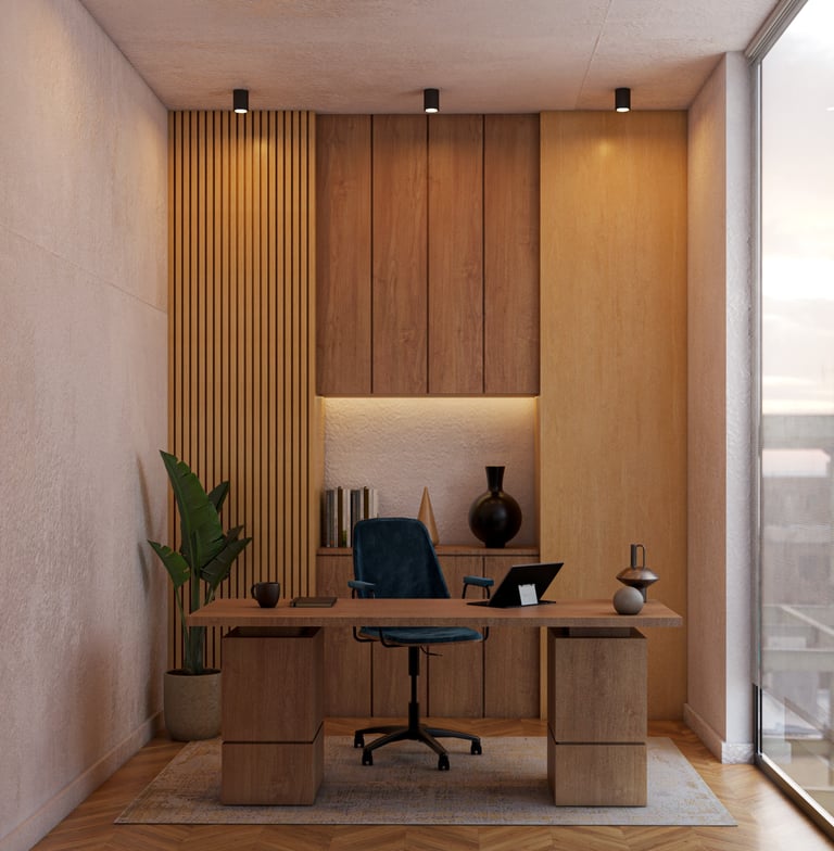 Escritorio de madera minimalista (Diseño conceptual de oficina)
