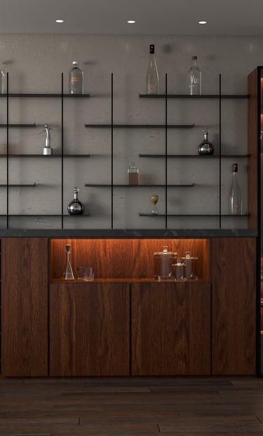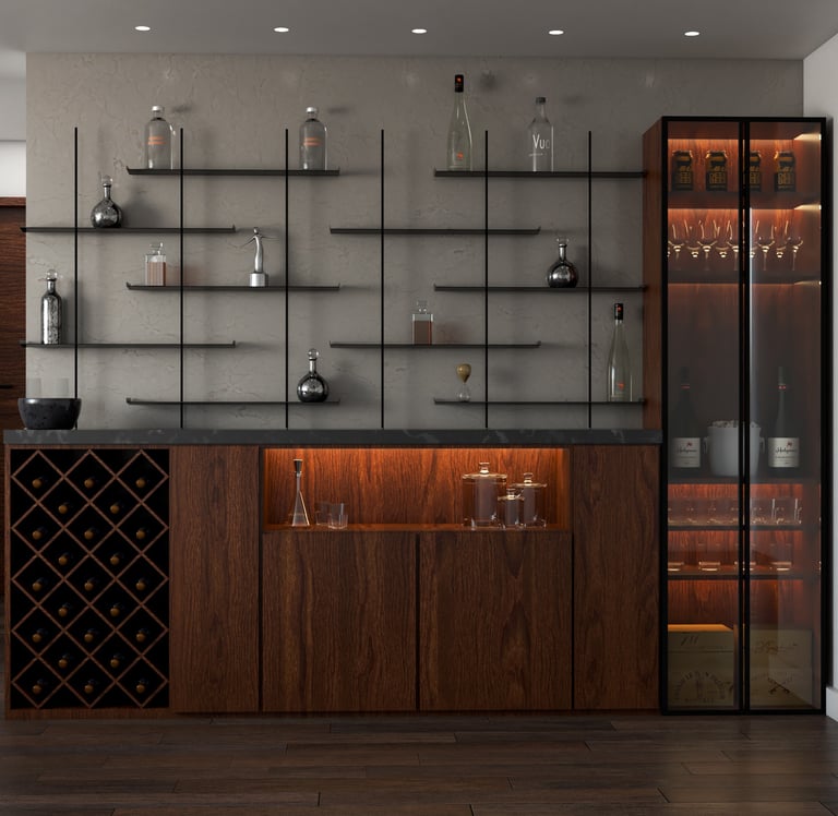 Living room bar con espacio para botellas de vino