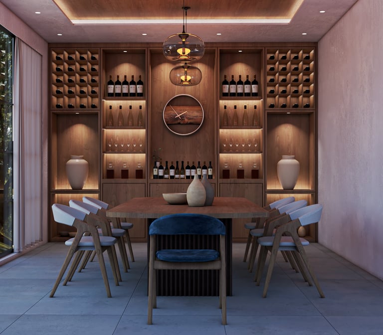 Comedor integral con cava de vinos